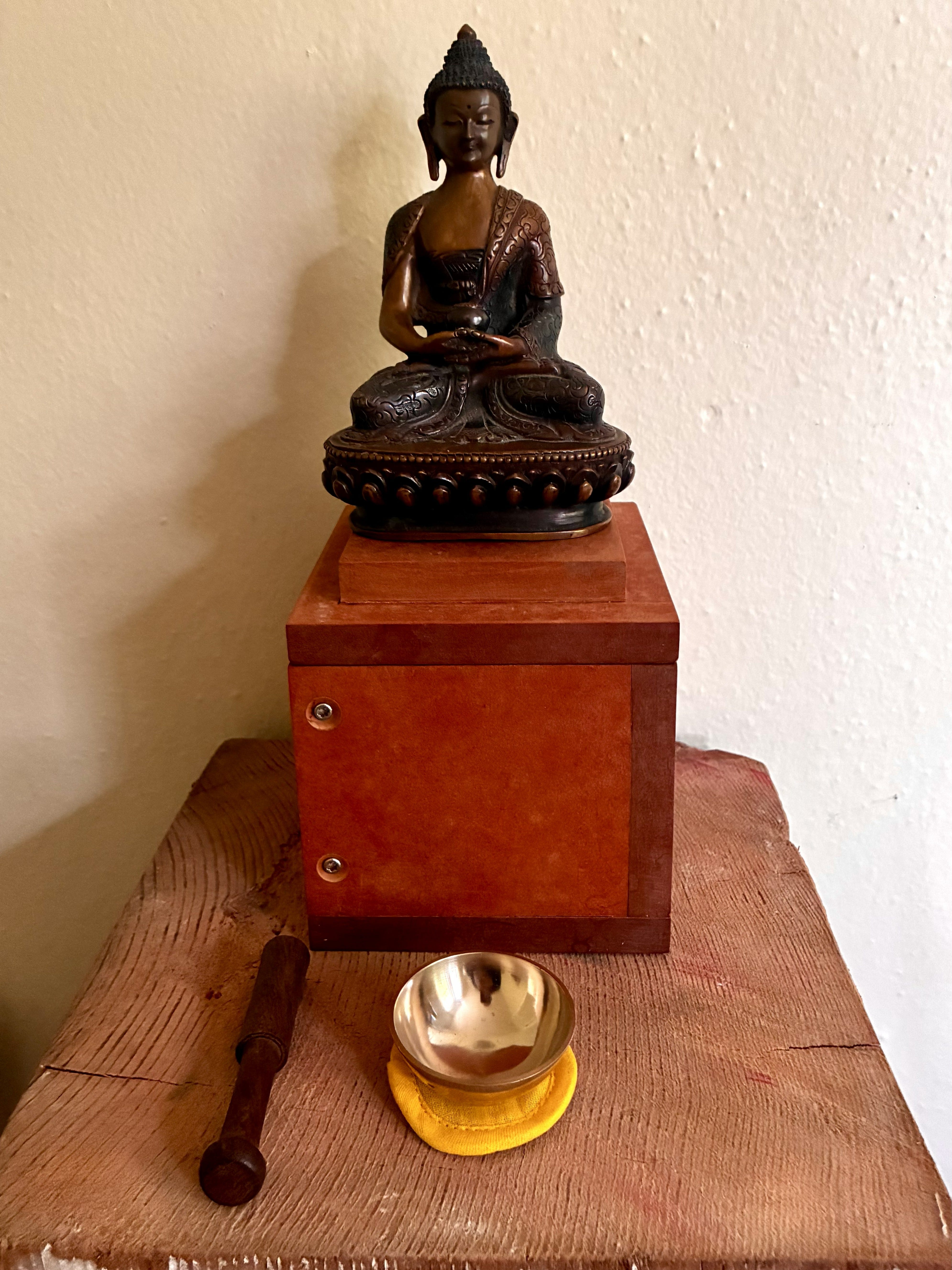 in this kitchen 6 years later, holding her small, heavy box of remains